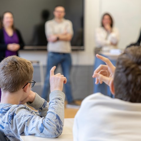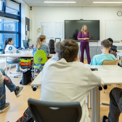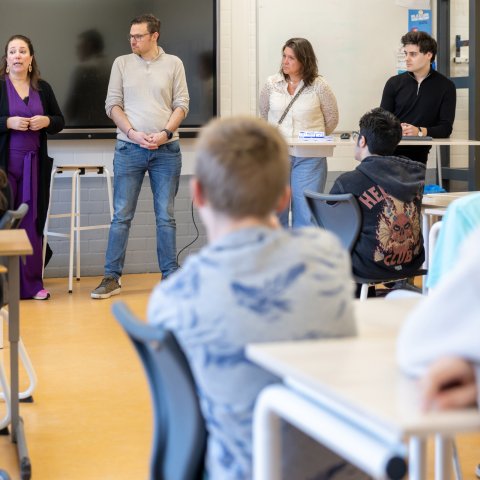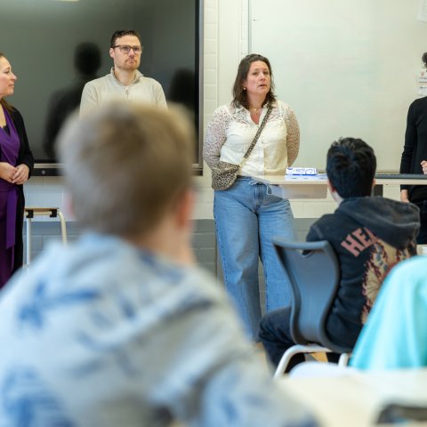 In het klaslokaal namen zij de leerlingen mee in het werk dat zij doen. Ze vertelden ook waarom het zo belangrijk is dat inwoners en jongeren hun stem laten horen tijdens de gemeenteraadsverkiezingen op 18 maart.